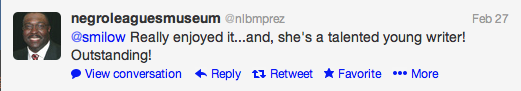 President of the Negro League Baseball Museum read my blog.